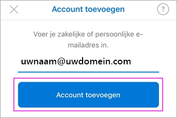 Stap 2 Afbeelding van een grijze lijn Voer uw e-mailadres in als dit de eerste keer is dat u Outlook voor iOS gebruikt. Tik daarna op Account toevoegen.