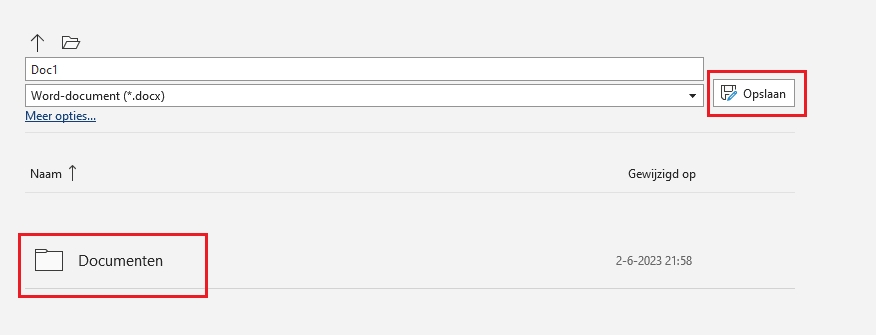 Voorbeeld 1 - Word/Excel/PowerPoint document opslaan