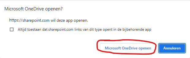 Je krijgt een pop-up om toestemming te geven om de link met OneDrive te openen. Klik op "Microsoft OneDrive openen".
